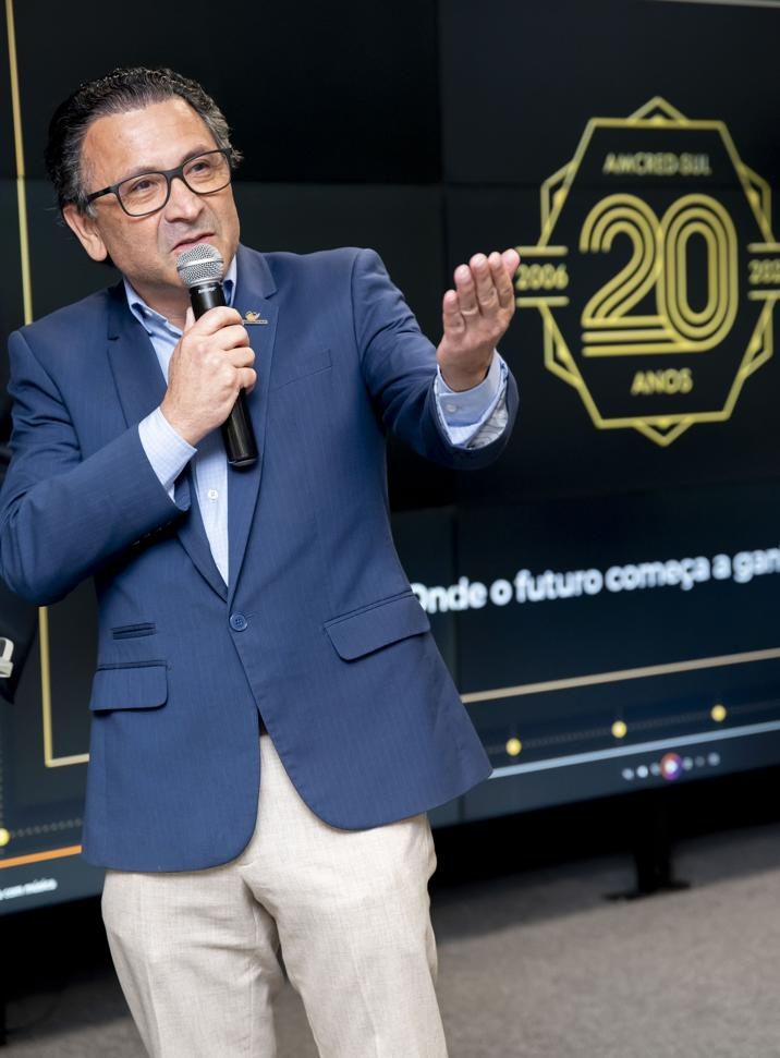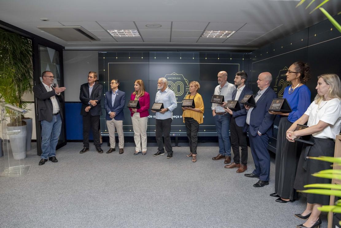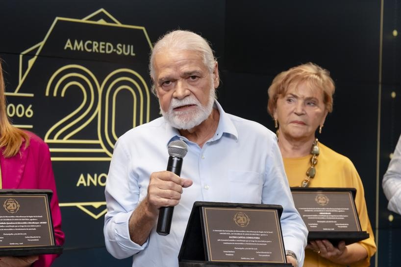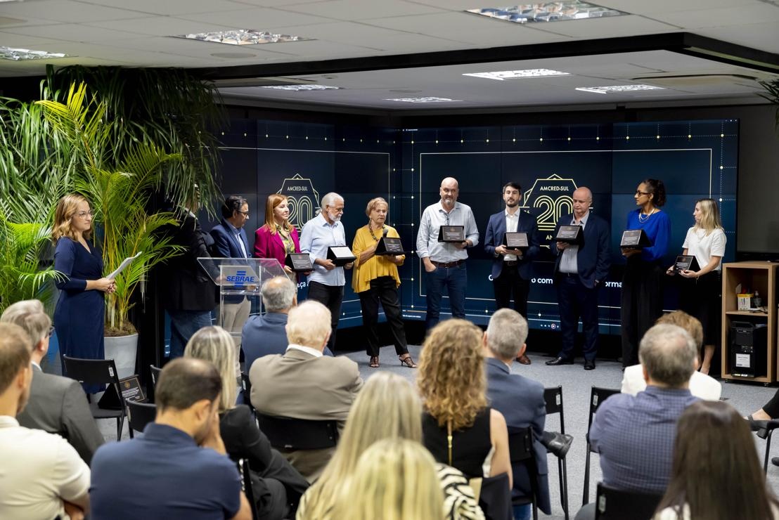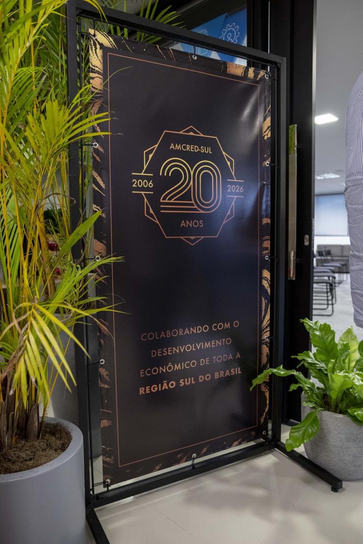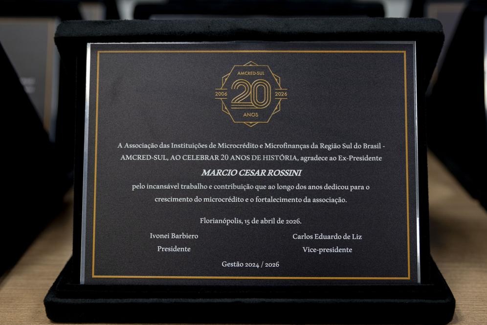 A celebração oficial dos 20 anos da Associação das Instituições de Microcrédito e Microfinanças da Região Sul do Brasil (AMCRED-SUL) reuniu gestores e dirigentes das organizações de microcrédito associadas e representantes de entidades públicas e privadas parceiras. O evento foi aberto com a Assembleia Geral que acompanhou o retrospecto de atividades da Associação no último exercício; aprovação de balanço financeiro e eleição da Diretoria para o biênio 2026/2028. Na sequência ocorreu o ato comemorativo com as homenagens a dirigentes e representantes de entidades parceiras, seguindo-se um jantar de confraternização. Confiram neste LINK as imagens do evento (fotos: Elis Pereira/Divulgação AMCRED-SUL).