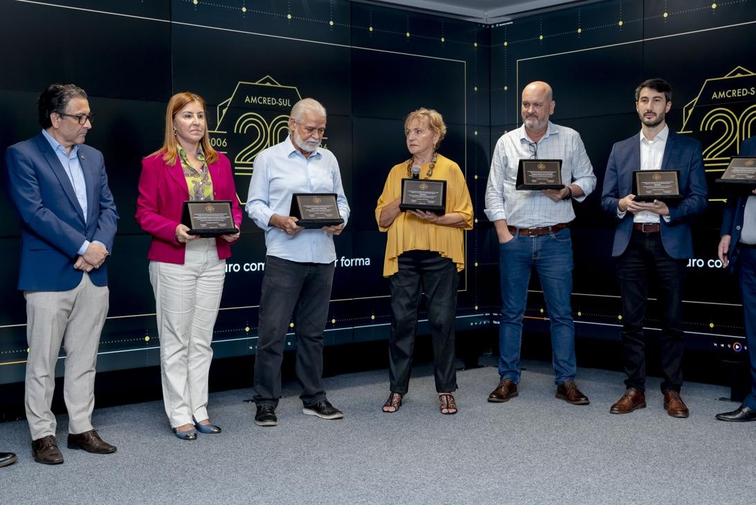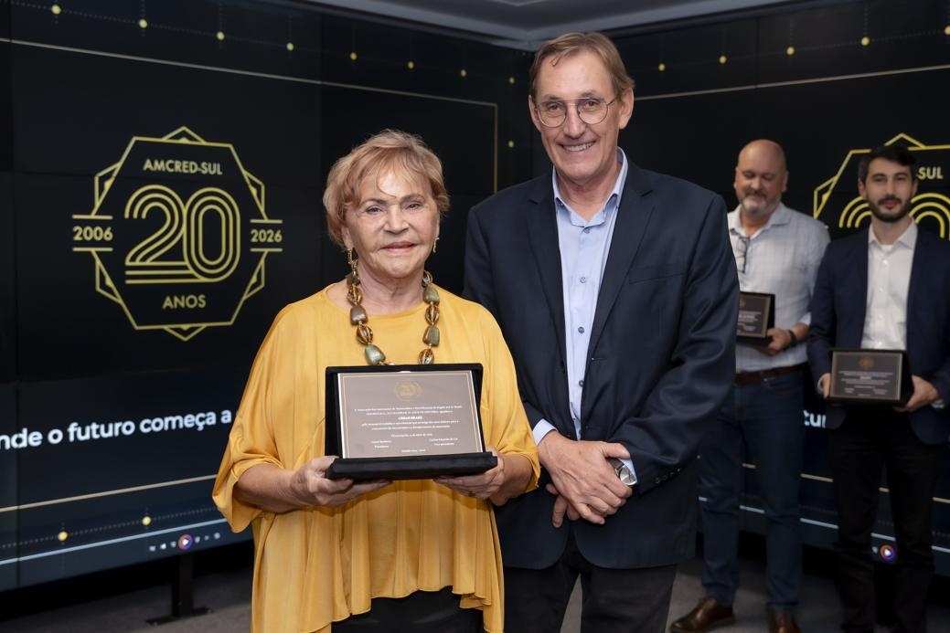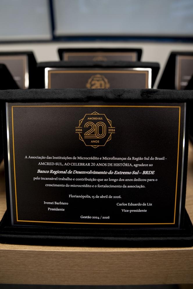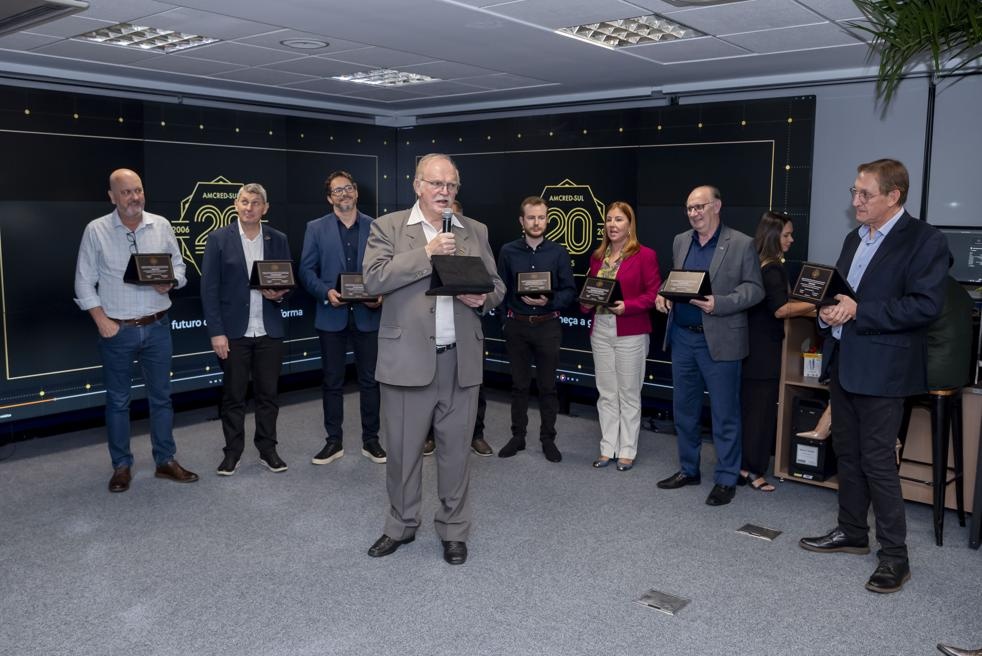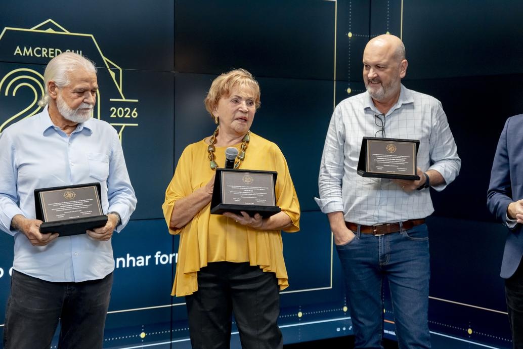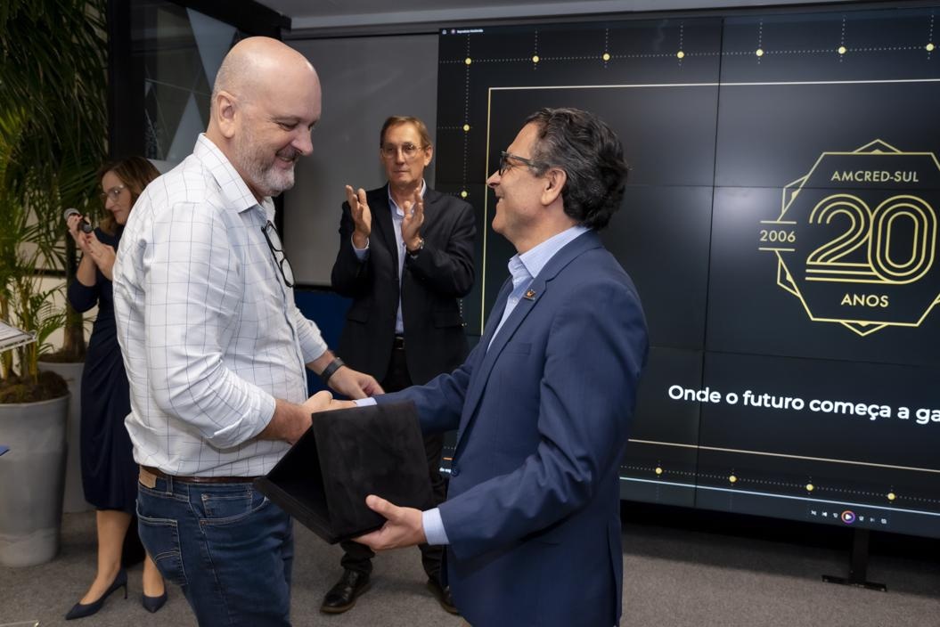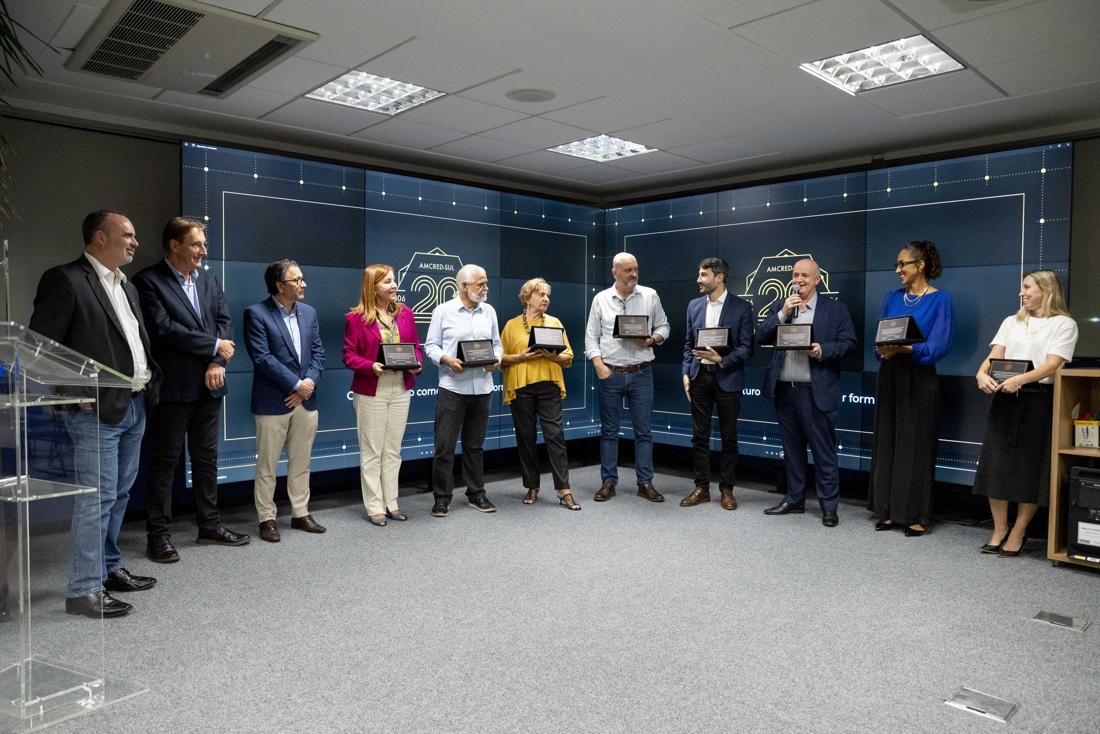 A celebração oficial dos 20 anos da Associação das Instituições de Microcrédito e Microfinanças da Região Sul do Brasil (AMCRED-SUL) reuniu gestores e dirigentes das organizações de microcrédito associadas e representantes de entidades públicas e privadas parceiras. O evento foi aberto com a Assembleia Geral que acompanhou o retrospecto de atividades da Associação no último exercício; aprovação de balanço financeiro e eleição da Diretoria para o biênio 2026/2028. Na sequência ocorreu o ato comemorativo com as homenagens a dirigentes e representantes de entidades parceiras, seguindo-se um jantar de confraternização. Confiram neste LINK as imagens do evento (fotos: Elis Pereira/Divulgação AMCRED-SUL).