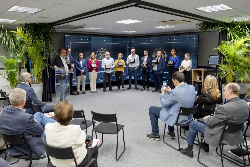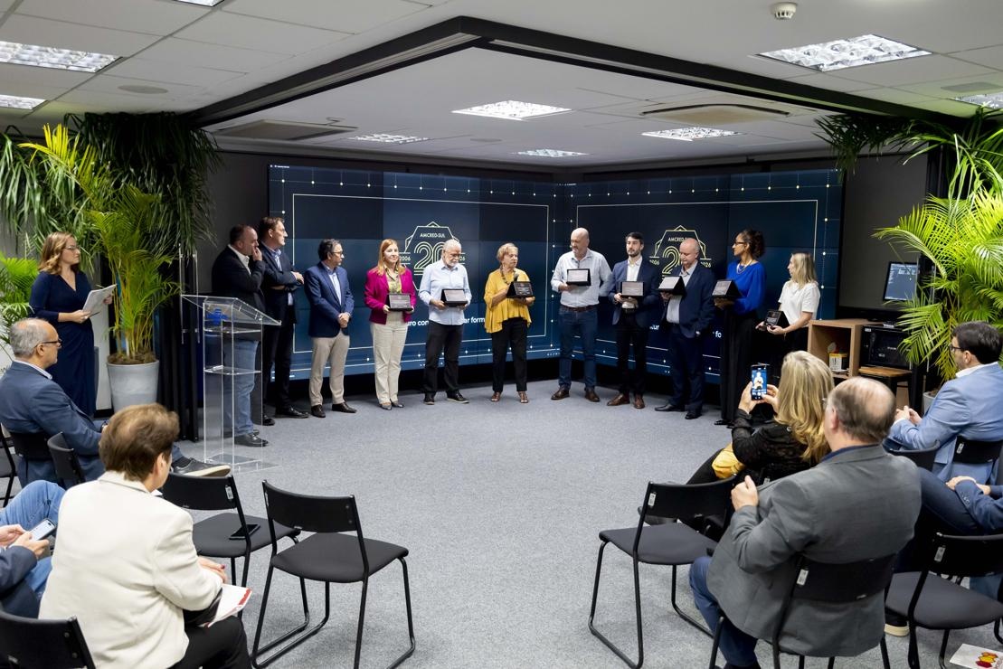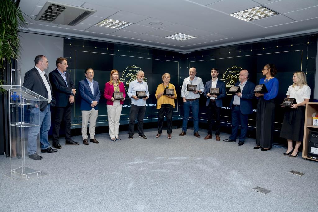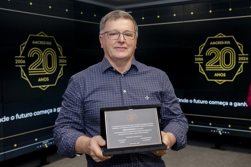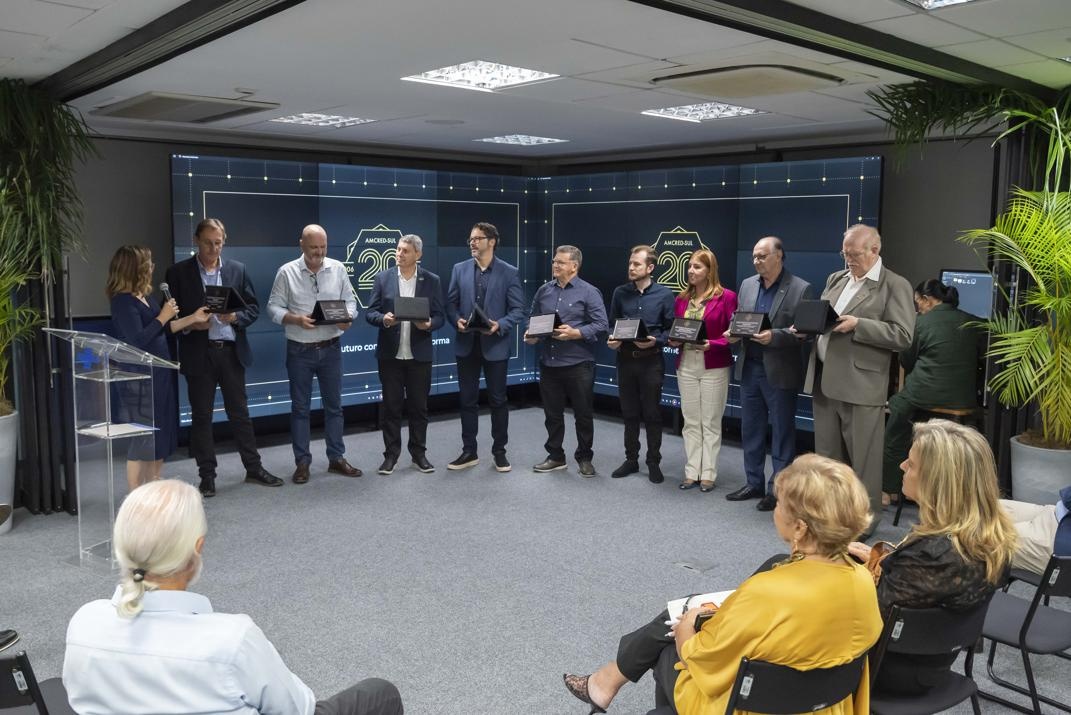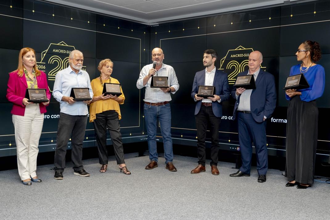 A celebração oficial dos 20 anos da Associação das Instituições de Microcrédito e Microfinanças da Região Sul do Brasil (AMCRED-SUL) reuniu gestores e dirigentes das organizações de microcrédito associadas e representantes de entidades públicas e privadas parceiras. O evento foi aberto com a Assembleia Geral que acompanhou o retrospecto de atividades da Associação no último exercício; aprovação de balanço financeiro e eleição da Diretoria para o biênio 2026/2028. Na sequência ocorreu o ato comemorativo com as homenagens a dirigentes e representantes de entidades parceiras, seguindo-se um jantar de confraternização. Confiram neste LINK as imagens do evento (fotos: Elis Pereira/Divulgação AMCRED-SUL).