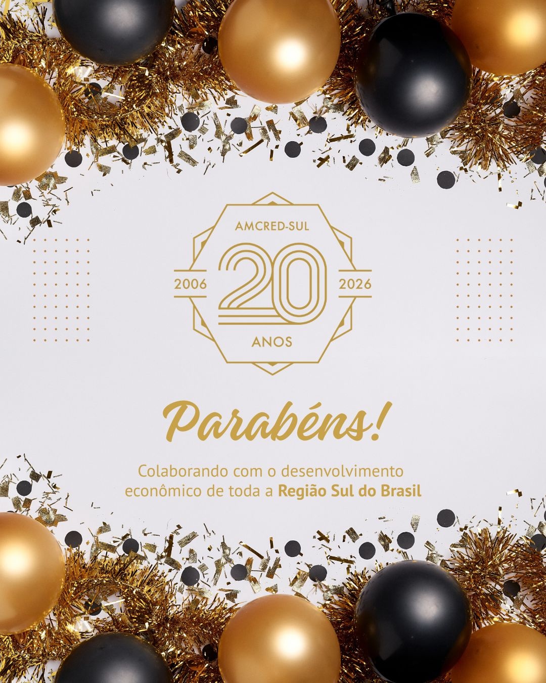 A Associação das Instituições de Microcrédito e Microfinanças da Região Sul do Brasil (AMCRED-SUL) promoverá nesta quarta-feira (15/04) a partir das 18h um evento especial comemorativo aos 20 anos de sua fundação. Será no auditório da sede do Sebrae/SC, em Florianópolis, com a participação de lideranças e dirigentes do setor, autoridades e convidados.