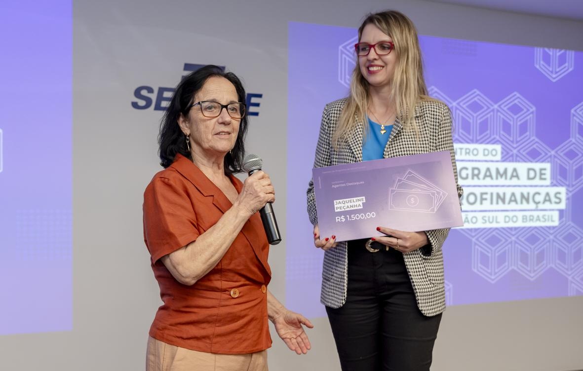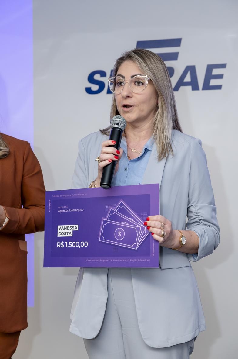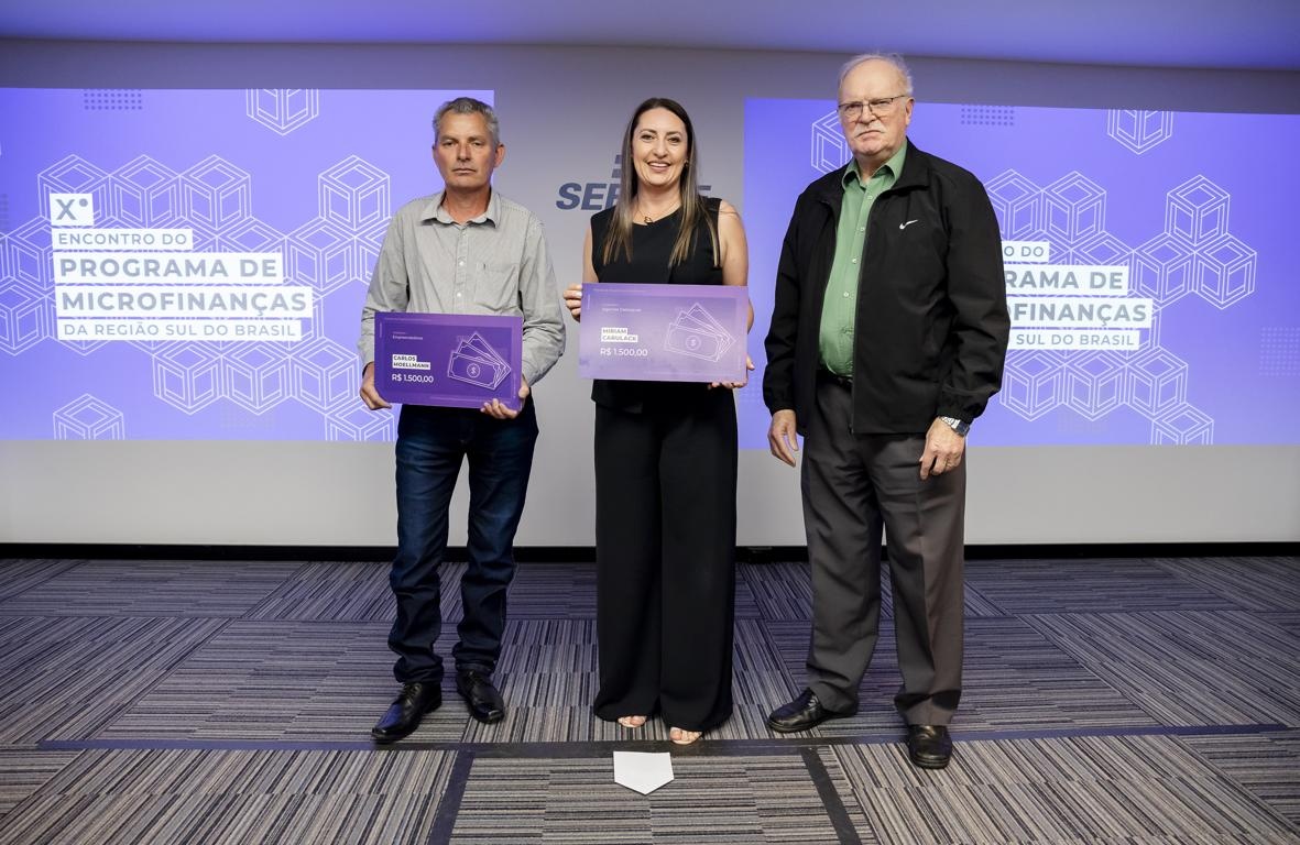 Por fim, houve a premiação dos talentos do Programa de Microfinanças da Região Sul do Brasil 2025, nas categorias Agentes de Crédito e Empreendedores de Destaque. Para este ano, a AMCRED-SUK decidiu homenagear um agente de crédito e um empreendedor de cada associada, selecionados pelas próprias instituições.