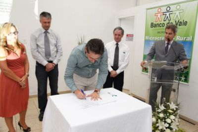 Foi realizado na última sexta-feira (25) na agência do Banco do Vale, em Blumenau, o cerimonial de assinatura do primeiro contrato de aporte de recursos destinado ao Microcrédito assinado pela nova diretoria do Badesc, presidida pelo senhor Nelson Santiago.