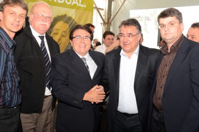 Foto: Na foto Governador Raimundo Colombo, deputado estadual Antônio Aguiar; vice-presidente do Banco do Planalto Norte, Romeu Vier; gerente executivo do banco, Nivaldo Brey Junior; e supervisor de mercado, Sandro Rocha.