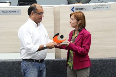 Presidente do BF, Isabel Baggio contou que, no começo, havia dúvidas sobre a atuação do banco, embora também houvesse solidariedade por parte de um grupo de empresários e políticos. “Nas reuniões da Associação Comercial imaginávamos que esta iniciativa seria uma utopia. Mas dentro desta gama de sentimentos e dificuldades, nos veio a coragem para prosseguirmos. As pessoas foram se agregando por uma causa justa, por ser uma organização do terceiro setor, sem propriedade, trabalhando de uma forma a fazer nossa parte por aqueles que têm menos condições”, contou Isabel Baggio. “Apesar de todas as dificuldades, valeu a pena”, complementa a presidente, que recebeu do vereador João Alberto uma placa comemorativa (foto).