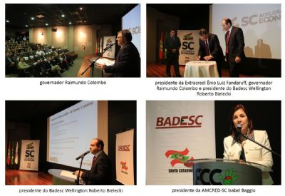 Estiveram presentes no evento o governador Raimundo Colombo, o presidente do Badesc Wellington Roberto Bielecki, a presidente da AMCRED-SC Isabel Baggio e representantes das OSCIP´s associadas.