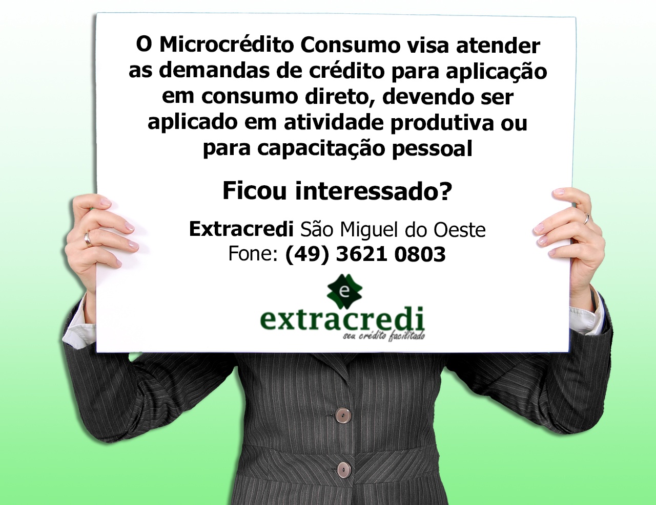 Precisando investir em equipamentos, mercadoria, inovação, ampliar sua empresa? A Extracredi é o fomento certo. Consulte nossas linhas de crédito para micro e pequenos empresários formais ou informais, profissional liberal, autônomo, agricultores. Capital fixo, giro, misto e para Meis, Juro Zero. As parcelas são fixas e o cliente escolhe a melhor data para pagar. Extracredi, seu credito facilitado!