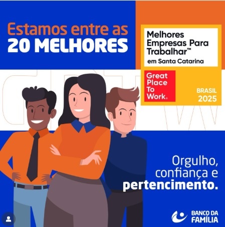A associada Banco da Família conquistou mais uma distinção no seu desempenho, está entre as 17 melhores empresas para trabalhar em Santa Catarina. O resultado foi divulgado pela certificadora GPW (Great Place to Work), que anualmente promove esta escolha.