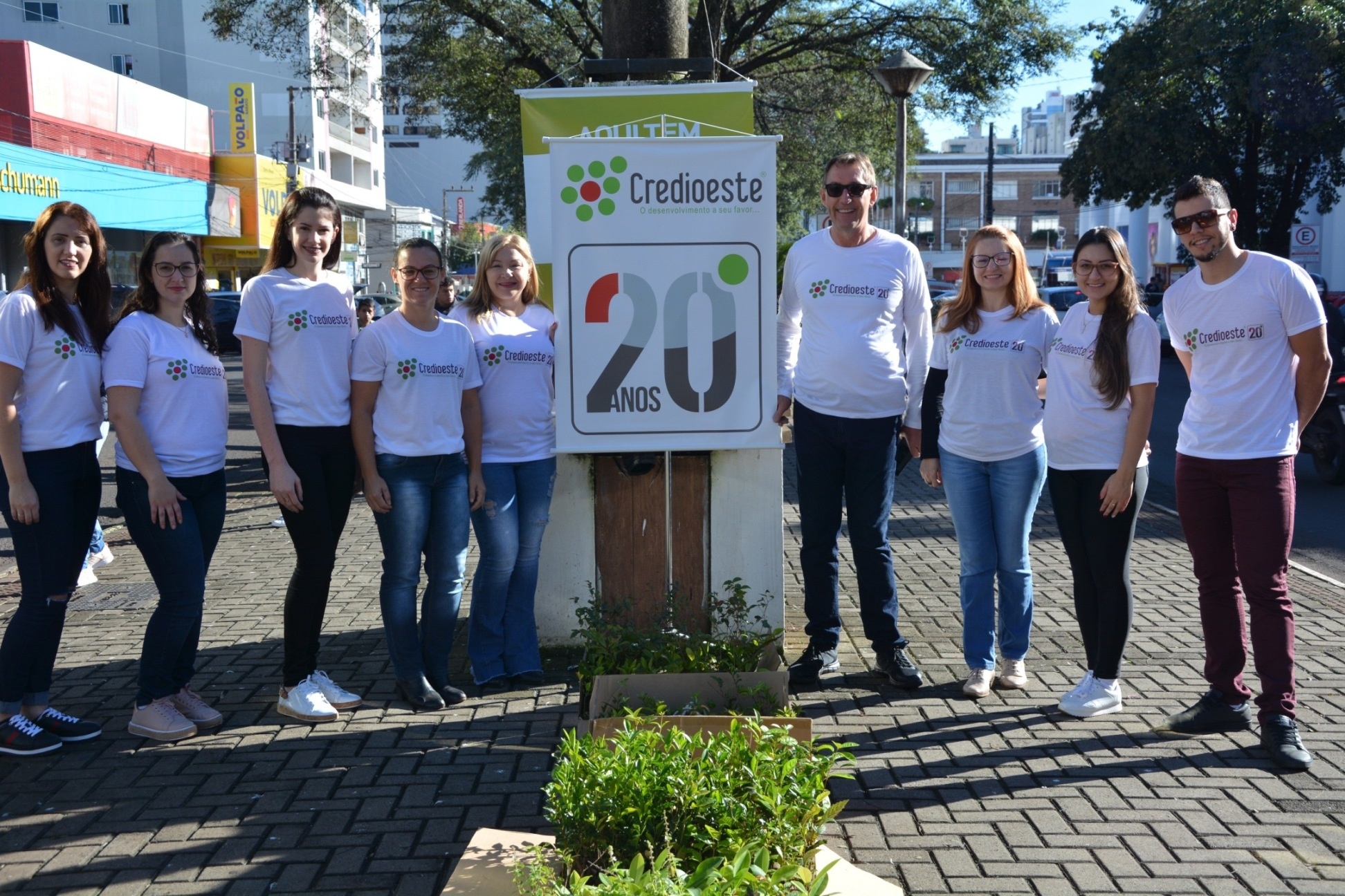 Conselheiros, colaboradores e parceiros da Credioeste – agência de microcrédito comemoram na última semana o aniversário de 20 anos da instituição. Fundada em 19 de maio de 1999, a Credioeste está presente em Chapecó e região atuando no fortalecimento das microfinanças destinadas aos empreendedores de pequeno porte. Além da comemoração, também foram entregues, em parceria com o Viveiro Florestal da Unochapecó, mudas de árvores à comunidade.