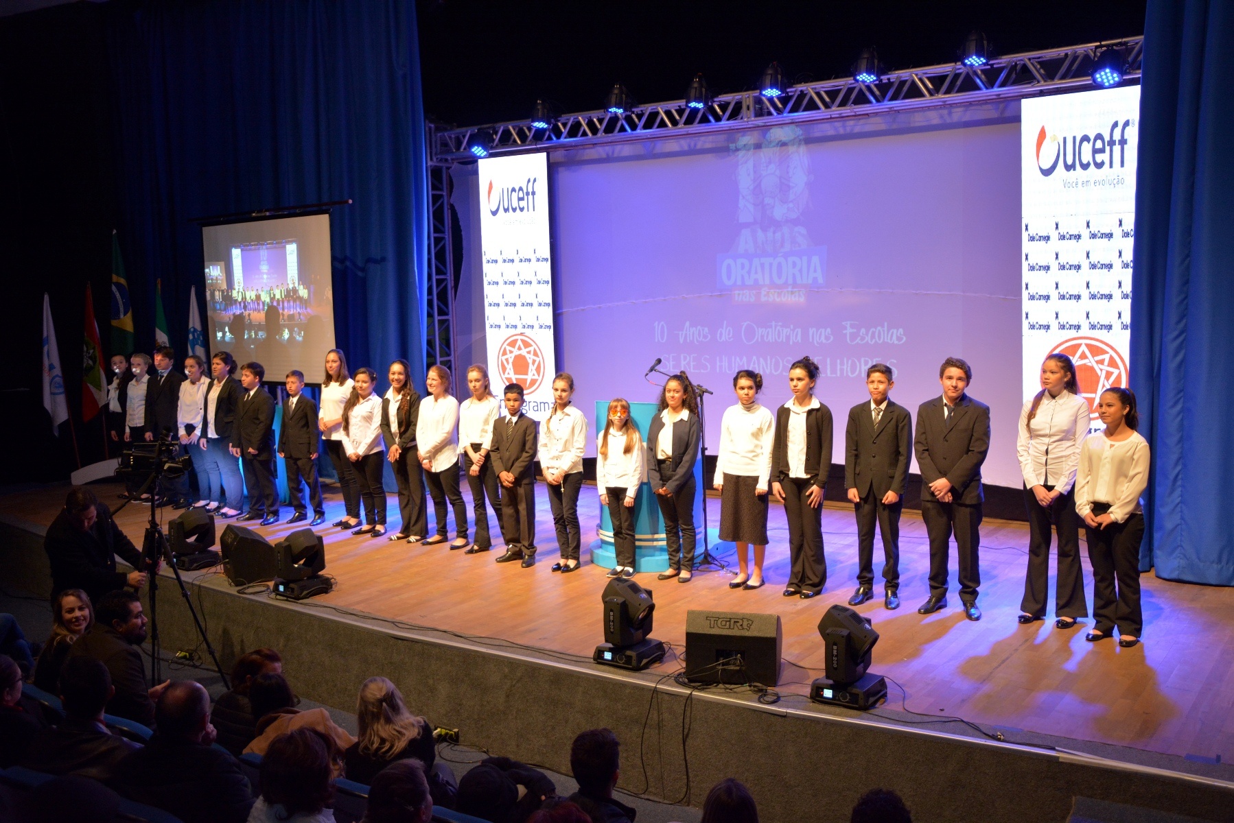 O Teatro do Centro de Cultura e Eventos Plínio Arlindo de Nes, em Chapecó, esteve lotado na última semana para receber a final do Concurso Oratória nas Escolas. O projeto da JCI Chapecó chegou a 10ª edição com 715 inscritos em 2018 entre as 22 instituições de ensino municipais. Na grande final o vencedor de cada escola subiu à tribuna para defender seu discurso sobre o tema “Seres humanos melhores”.