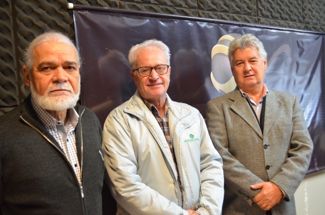 O atual presidente, Júlio Búrigo, o novo presidente, José Jacó Pivetta, e o diretor-executivo, Pedro Ananias Alves, estiveram na sede do Grupo WH Comunicações em São Miguel do Oeste