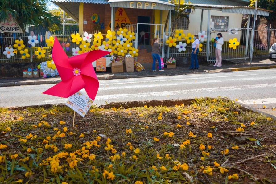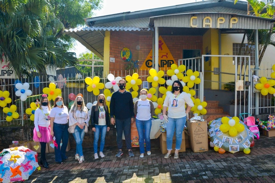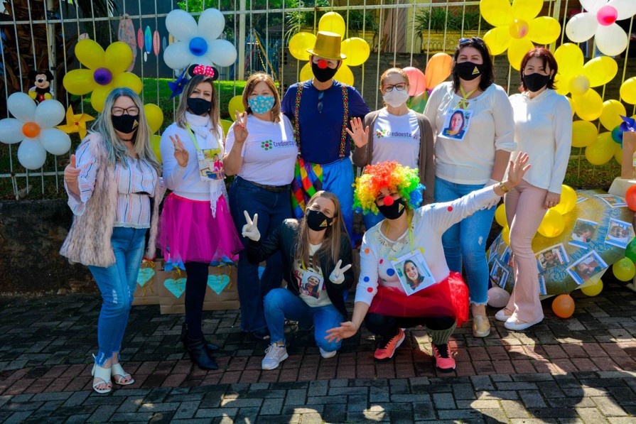 O fim de semana em Chapecó foi marcado por cores, sorrisos e um carinho especial em época de pandemia. Para comemorar o Dia das Crianças, a Credioeste realizou a campanha de arrecadação de brinquedos, que beneficiou o Centro Associativo de Atividades Psicofísicas Patrick (CAPP), com o apoio da comunidade e da Macropampa Distribuidora. Diferente dos anos anteriores, a data foi celebrada sem atividades recreativas, mas com a presença de palhaços, que entregaram os presentes no formato drive thru. Para receber os educandos, foram cumpridas minuciosamente todas as medidas de prevenção no combate da covid-19.