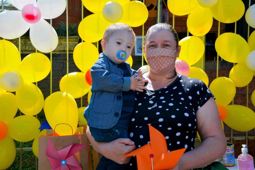 Luiz Felipe, de dois anos, foi o primeiro contemplado pela ação. A mãe, Vanderleia Caon Barden, descobriu o diagnóstico de Síndrome de Down do filho após o nascimento. “No início pensei que eu pudesse sentir muita dificuldade, pois eu não conhecia outras pessoas com alteração genética. Buscamos ajuda e, atualmente, ele realiza estimulação precoce, fisioterapia e terapia fonoaudiológica. Percebemos a evolução dele a cada dia ao aprender as palavras e ao caminhar. O Luiz é especial porque o amor dele me ensina a ser uma pessoa melhor”, destacou Vanderleia.