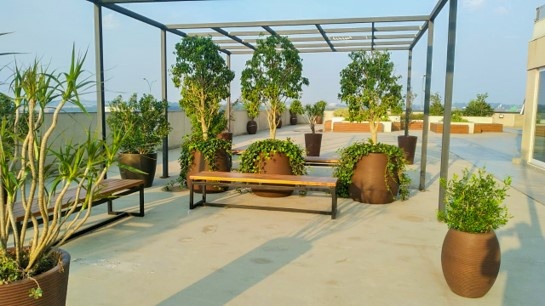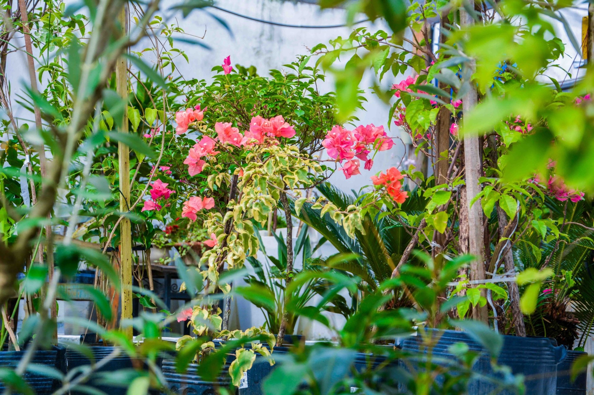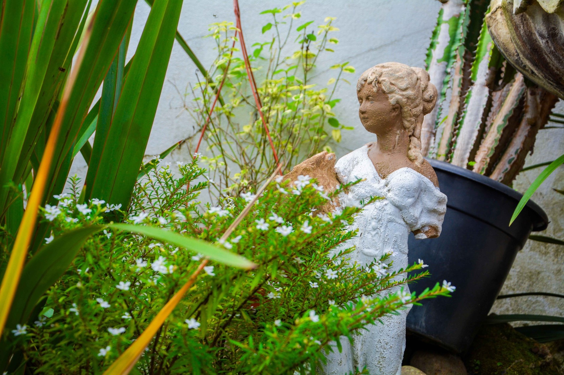 O corredor cercado por samambaias e gerânios, pendurados nas paredes em vasos de cerâmica, indica o caminho de um lugar generosamente encantado. A paisagem é composta por uma vasta quantidade de plantas verdes que contrastam com os tons quentes de diferentes espécies vegetais que harmonizam o local, despertando sentimentos e emoções enérgicas, desde a alegria do amarelo da Allamanda até a beleza criativa e inspiradora da Bougainvillea glabra, que realça sua cor lilás na natureza clara e esverdeada. As flores, respectivamente, são popularmente conhecidas como dedal-de-dama e três-marias. Comumente, integram o paisagismo das residências e simbolizam um objeto cênico nas memórias afetivas.