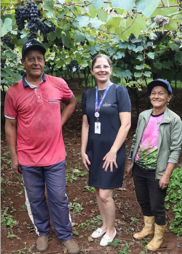 Foi através do facebook que Pierina conheceu a Crecerto. A boa impressão virou parceria — e investimento. “Nós fizemos um parreiral com a uva Carmen. Deu tanta uva que a estrutura não aguentou, caiu. Com o crédito, nós compramos palanques bem fortes e conseguimos consertar a parreira”, conta, com naturalidade de quem encara os desafios sem perder o bom humor.