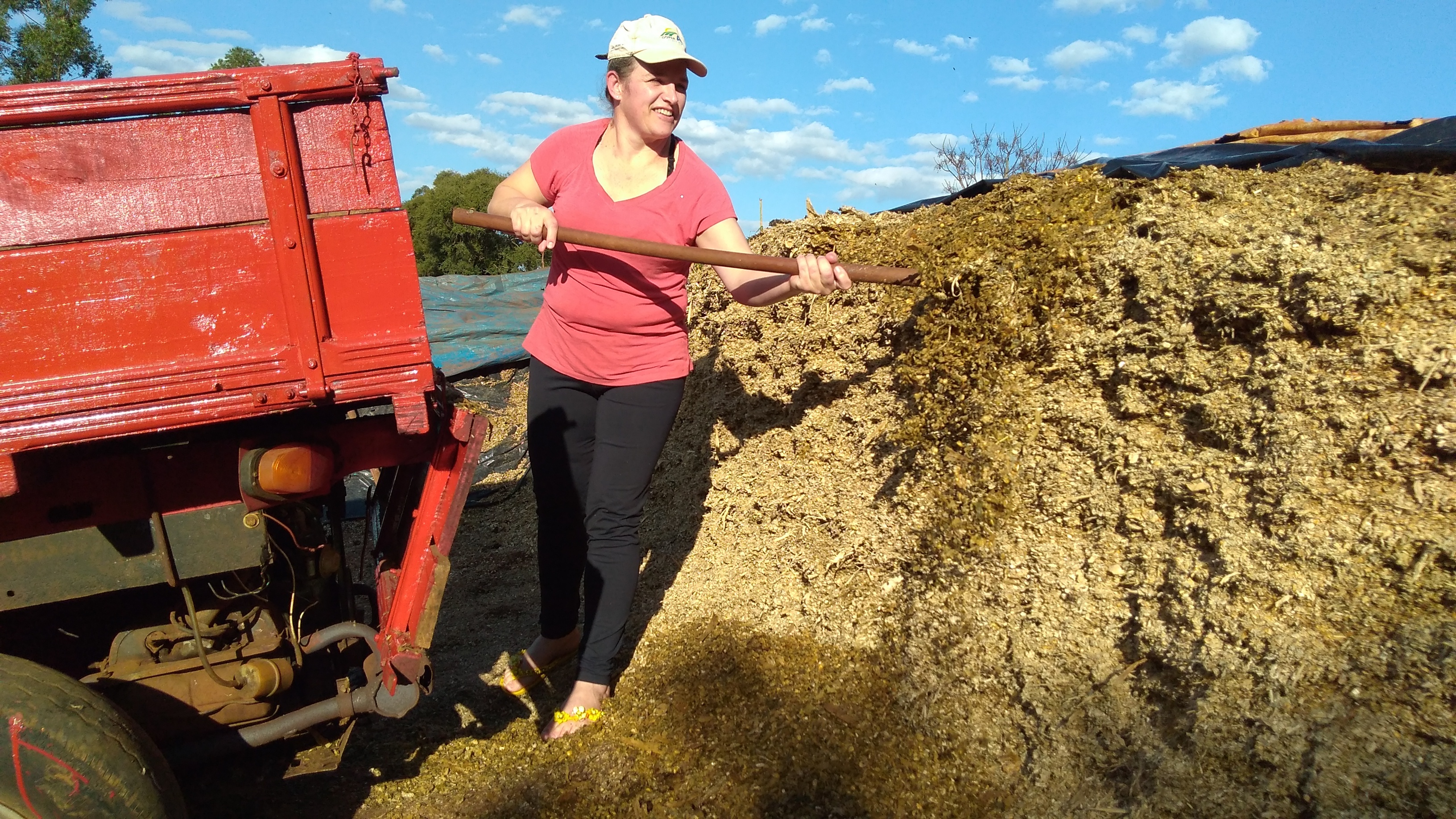 Já em 5º lugar foi escolhida a foto da agente de crédito, Fabiele D. Schulz, da filial de Palmitos, com a empreendedora Claucinara Schulke Friedrich, da Linha Floresta, Palmitos/SC, que atua na agricultura com produção de suínos e leite, juntamente com a família.
