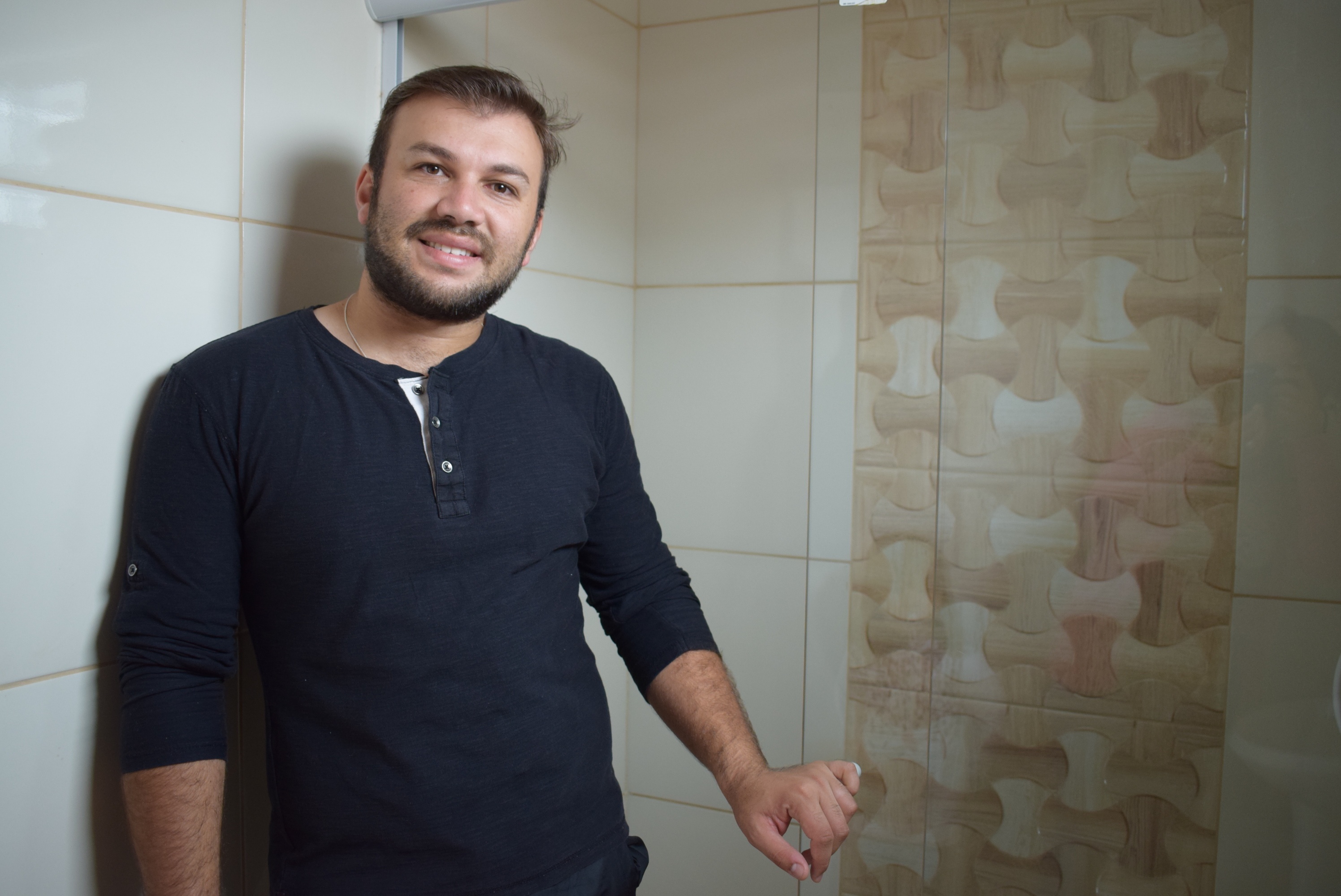 A instituição também possibilitou ao professor Ramom Borges ter um banheiro espaçoso e aconchegante na residência nova, também construída com empréstimo por meio do BF Casa. “Depois de ir a vários outros lugares, conheci o Banco da Família. Foi onde encontrei as melhores condições e atendimento. Em menos de três meses, minha casa está pronta. Estou muito contente”.