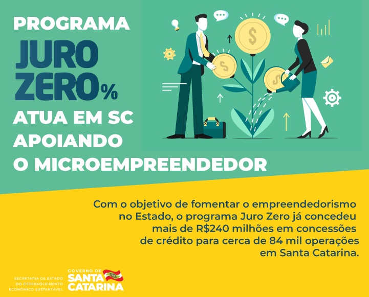 Com o Juro Zero, a SDS promove o crescimento econômico de Santa Catarina, atuando junto à base da economia. O programa está presente em 100% do território catarinense e incentiva a formalização do pequeno empreendedor que passa a contribuir, gerar renda e muitas vezes, consegue o retorno destes investimentos em pouco tempo, passando da categoria de MEI para micro e pequena empresa.